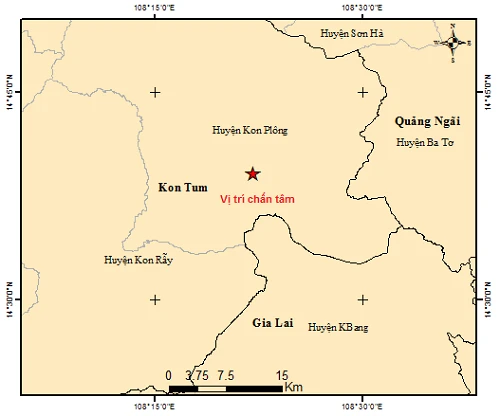 Chiều 20-4, Trung tâm báo tin động đất và cảnh báo sóng thần - Viện Vật lý Địa cầu cho biết một trận động đất đã xảy ra tại vị trí có tọa độ 14.652 độ vĩ Bắc, 108.369 độ kinh Đông, thuộc khu vực huyện Kon Plông, tỉnh Kon Tum.