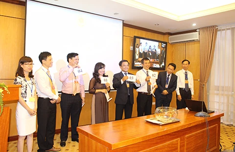 Trong hai ngày 31-8-2015 và 1-9-2015, Bộ Tư pháp tổ chức thi tuyển ba chức danh lãnh đạo. Trong ảnh: Các ứng viên đang bốc thăm số thứ tự. Ảnh: NN