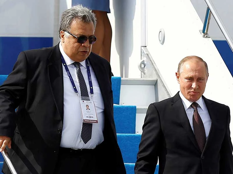 Cố đại sứ Nga tại Thổ Nhĩ Kỳ Andrei Karlov (trái) bước cạnh Tổng thống Nga Vladimir Putin (phải). Ảnh: REUTERS