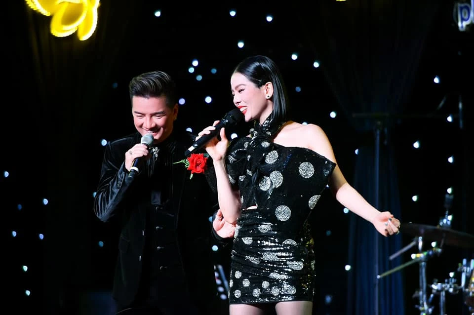 Đàm Vĩnh Hưng và Lệ Quyên ăn ý trên sân khấu. Ảnh: FBNV