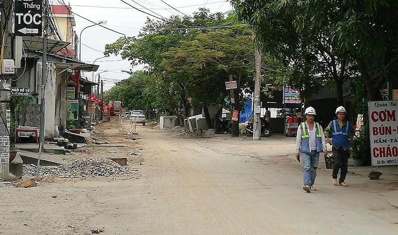 Đường Hồ Tông Thốc đoạn từ quốc lộ 1A đến điểm đóng cắt ngang đường đang được tu sửa lại.