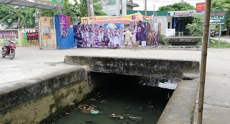 Kênh thủy lợi chạy ngầm qua bệnh viện và đại lộ Lê Nin rồi lộ thiên, phục vụ tưới tiêu cho người dân nhiều xã ở TP Vinh.