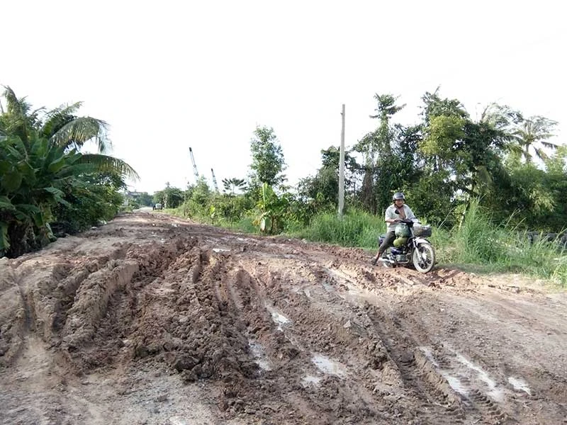 Những ngày này, cứ sau mỗi trận mưa lớn, đi dọc tuyến đê đoạn qua địa bàn phường An Phú Đông và Thạnh Lộc (quận 12), chúng tôi thường xuyên phải xuống xe dắt bộ vì nhiều đoạn đường bị lún, lầy nghiêm trọng. Ở những đoạn gần các bến bãi kinh doanh vật liệu xây dựng, do xe tải thường xuyên ra vào nên tình trạng hư hỏng cứ tái diễn liên tục. Chỉ tính đoạn ngắn vài km, từ cầu Bình Phước đến Hà Huy Giáp, đã có đến bốn bến bãi kinh doanh vật liệu xây dựng với lượng xe cơ giới lên đến hàng chục chiếc, hoạt động liên tục suốt ngày đêm.