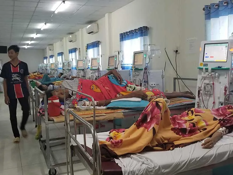 Bệnh nhân chạy thận ở BV đa khoa tỉnh Cà Mau sử dụng dịch lọc Braun đồng bộ với hệ thống máy lọc do chính Braun sản xuất. Ảnh: TRẦN VŨ
