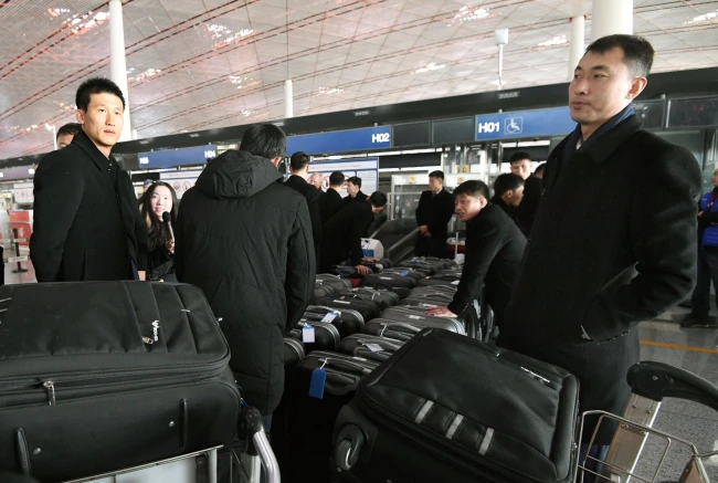 Đội tuyển Triều Tiên đến sân bay ở Tokyo.