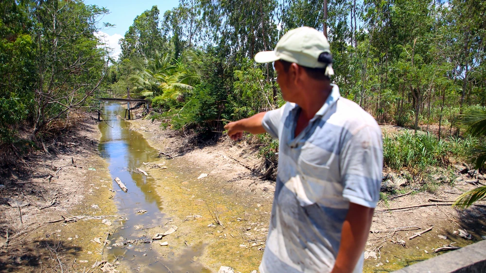 Hình ảnh dòng kênh cạn trơ đáy xuất hiện nhiều trong mùa khô ở đồng bằng sông Cửu Long. Ảnh: CHÂU ANH