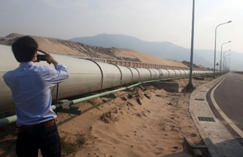 Hệ thống ống xả thải của Công ty Formosa Hà Tĩnh có đường kính gần 1m. Ảnh: LĐ