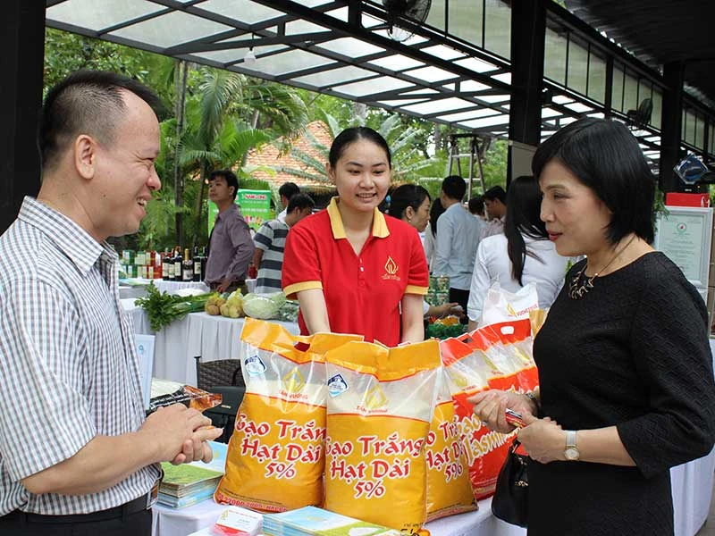 Gạo Việt đang thất thế trước các đối thủ. Trong ảnh:DN giới thiệu sản phẩm gạo tại một triển lãm hàng nông nghiệp, thực phẩm. Ảnh: QH