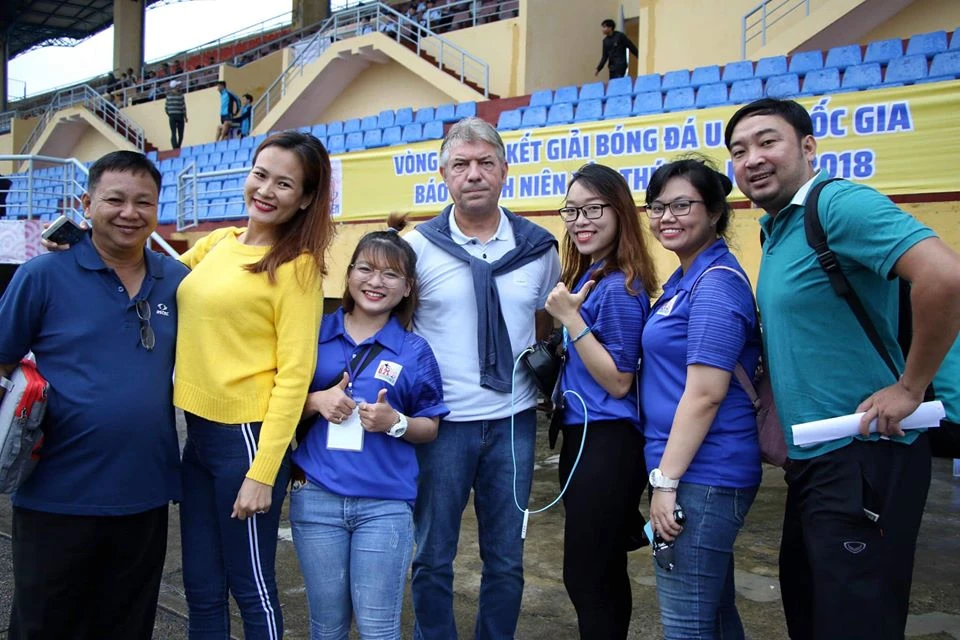 GĐKT Gede và Ban tổ chức giải bóng đá U-21 quốc gia trong những lần đi tuyển chọn cầu thủ trẻ. Ảnh: HỒNG VÂN