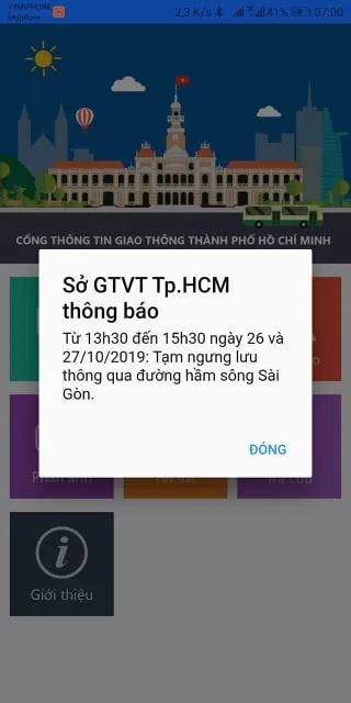 Cụ thể, ngày 23-10 trên app TTGT, một app cung cấp thông tin của Sở GTVT TP.HCM cho người dân, có thông báo như sau: "Từ 13 giờ 30 đến 15 giờ 30, ngày 26 và 27-10-2019 sẽ tạm ngưng lưu thông qua đường hầm sông Sài Gòn".