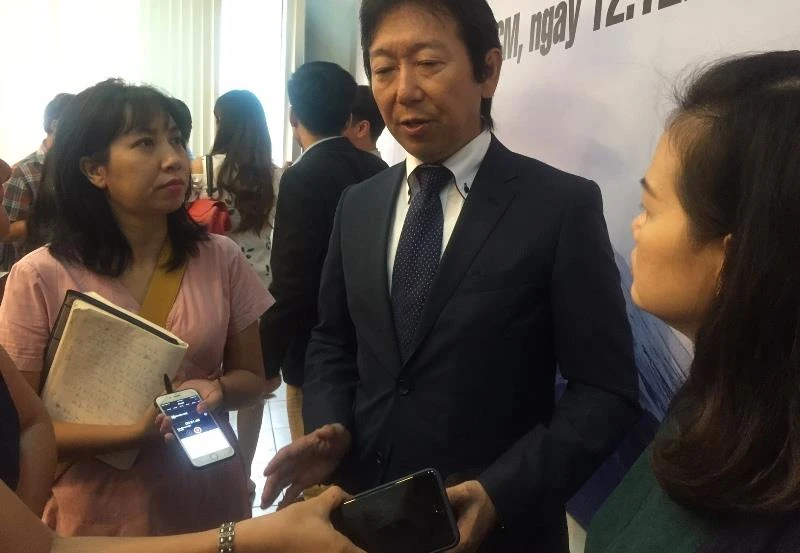 Shito Yuichiro, Tổng giám đốc Công ty TNHH AEON TopValu Việt Nam chia sẻ thông tin tại một buổi hội thảo.