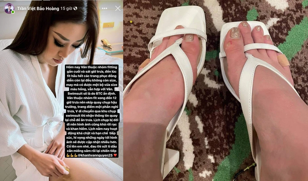 Chân Khánh Vân bị tụ máu, bàn chân nham nhở trầy xước do liên tục đi giày cao gót, lịch thi năm nay dày đặc. Ảnh: CTV