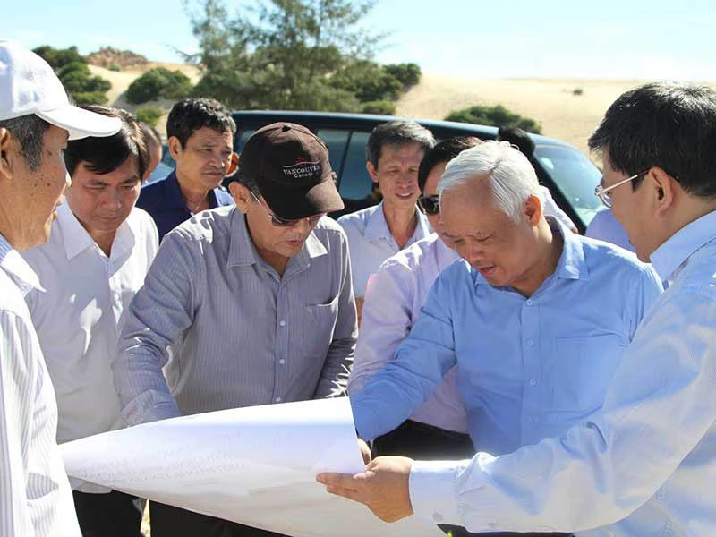 Phó Chủ tịch Quốc hội Uông Chu Lưu (thứ hai từ phải sang) khảo sát khu vực dự kiến thành lập đặc khu Bắc Vân Phong. Ảnh: VĂN KỲ