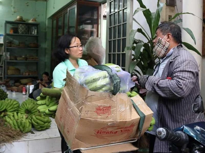Thành viên của Hội quán các bà mẹ tham gia giải cứu chuối giúp người dân Đồng Nai. Ảnh: T.TUYỀN