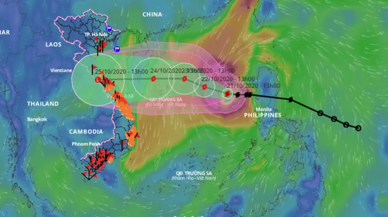 Dự báo trong 24 giờ tới, bão di chuyển theo hướng Tây Tây Bắc, mỗi giờ đi được khoảng 10 km và có khả năng mạnh thêm. Đến 13 giờ ngày 22-10, vị trí tâm bão ở khoảng 16,9 độ Vĩ Bắc; 115,6 độ Kinh Đông, cách quần đảo Hoàng Sa khoảng 340 km về phía đông. Sức gió mạnh nhất vùng gần tâm bão mạnh cấp 10-11 (90-115 km/giờ), giật cấp 13.