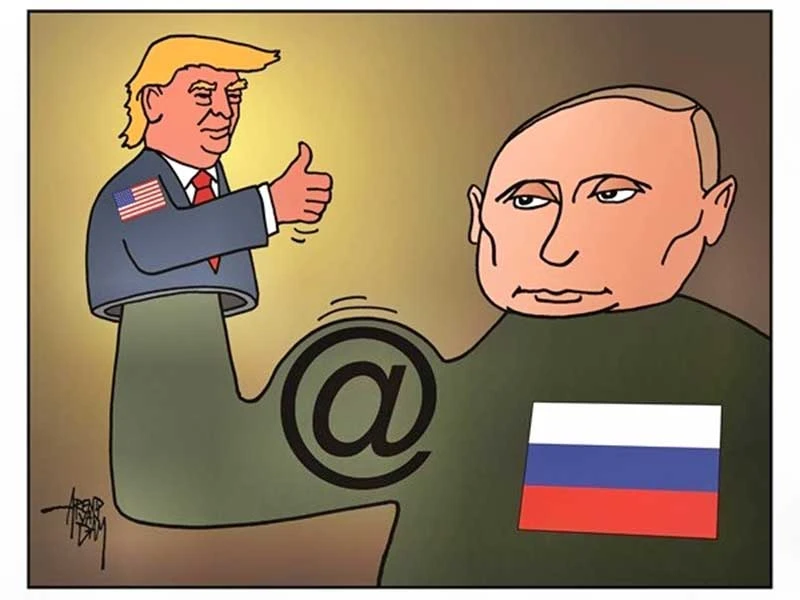 Các cơ quan tình báo Mỹ cho rằng Tổng thống Putin ủng hộ ông Trump. Biếm họa của AREND VAN DAM (Hà Lan)
