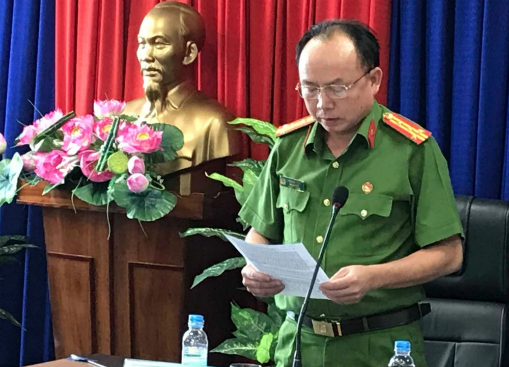 Đại tá Trần Văn Chính, Phó giám đốc, Thủ trưởng Cơ quan CSĐT Công an tỉnh Bình Dương thông tin vụ án. Ảnh: Vũ Hội.
