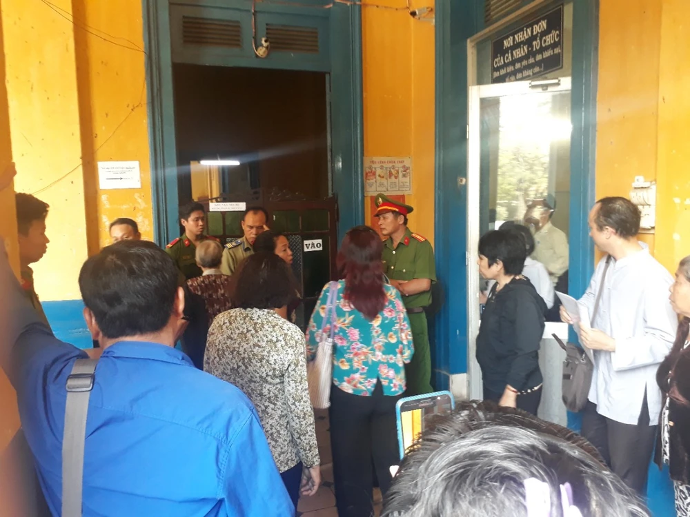 Nhiều công an và bảo vệ tòa án đã đến trấn an và yêu cầu hai bà vào phòng tiếp công dân, lãnh đạo tòa án sẽ cử người xuống tiếp.