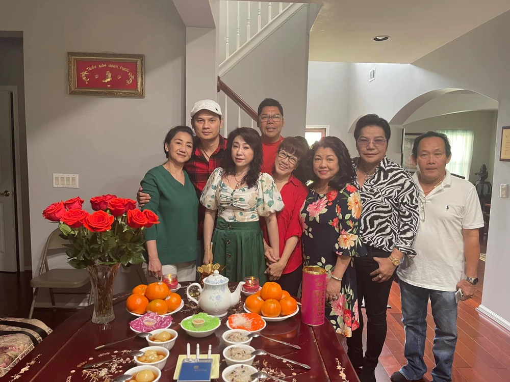 Nghệ sĩ Thoại Mỹ bên các nghệ sĩ hải ngoại trong thời gian sang Mỹ chữa bệnh