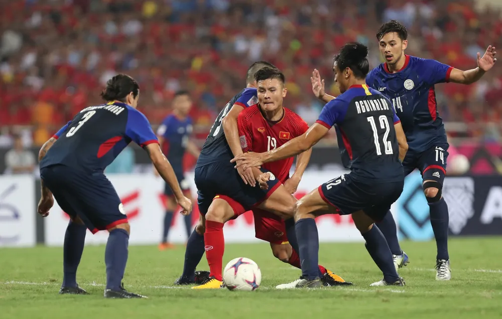 Hai trận lượt đi và về thì Quang Hải bị các cầu thủ Philippines kèm rất rát. Philippines đã phân tích băng hình về đội tuyển Việt Nam rất kỹ và họ xem Quang Hải là “mối đe dọa” số 1.