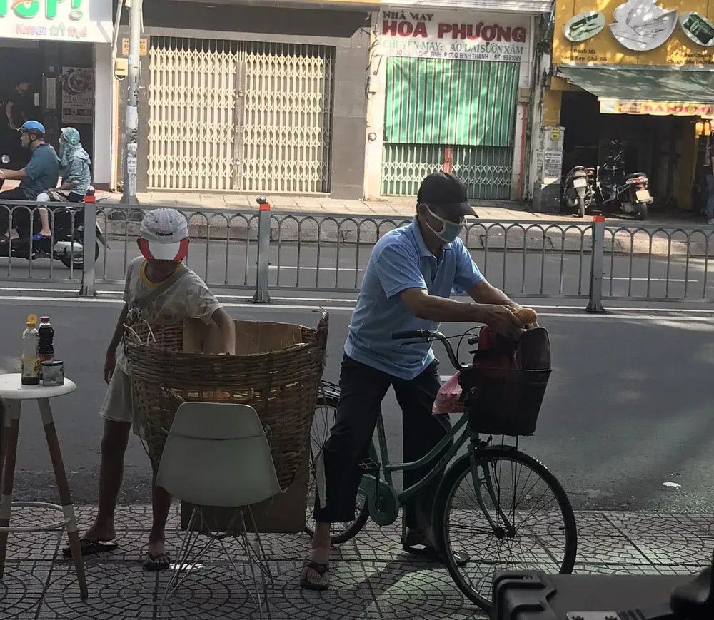 “Sọt bánh đó của ông chủ trà sữa Huy’s kìa. Trước ở đó còn tặng khẩu trang miễn phí nữa. Ổng để sát ngoài đường, có chữ trên tấm carton đó, đại loại là bánh mì miễn phí, mỗi người 1 ổ. Bánh để đó, ai cần cứ đến lấy rồi đi, tui cũng ăn đó hoài, sáng qua lấy 1 ổ, hôm có thêm sữa, hôm có thêm chuối,… Nhưng hồi bữa, không thấy sọt bánh mì nữa, mấy người bán hàng rong đi qua tính lấy bánh mì ăn sáng mà không thấy bánh đâu, lại đi về”, ông Tư kể vậy.