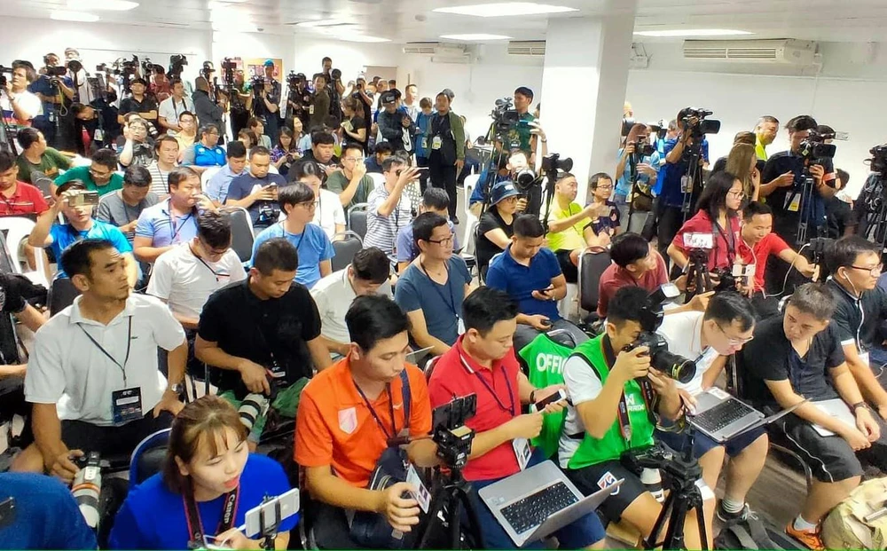 Một số phóng viên Thái Lan gây mất trật tự khiến thầy Park phải lên tiếng chấn chỉnh. Ảnh: ANH PHƯƠNG