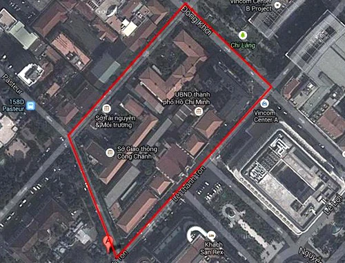 TP.HCM từng lên kế hoạch xây trung tâm hành chính TP.HCM nằm ở bốn trục đường Lê Thánh Tôn - Pasteur - Lý Tự Trọng - Đồng Khởi (quận 1). Ảnh: Google maps