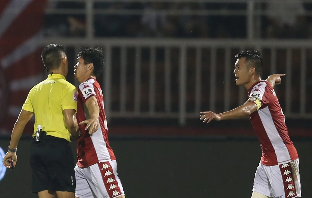Trọng tài Trần Văn Trọng dù đứng gần và quan sát rất kỹ vẫn không cho TP.HCM hưởng phạt đền.