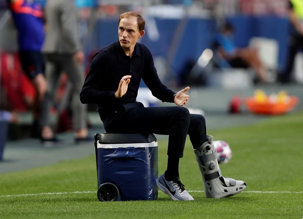 HLV Tuchel bị gãy ngón chân út, bong gân mắt cá, cùng tổn thương gối. Ảnh: AFP