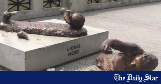 Thế là tượng đài Messi mọc lên nơi công viên đẹp đẽ chỉ tồn tại được vài ngày rồi bị chém không thương tiếc.