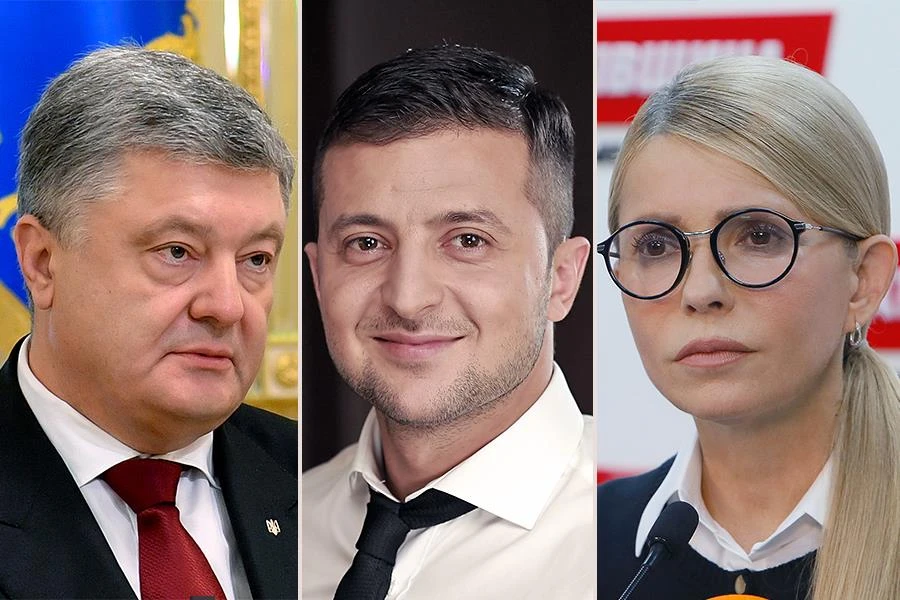 Tổng thống Petro Poroshenko, Ứng viên Volodymyr Zelenskiy và ứng viên Yulia Tymoshenko. Ảnh: kyivpost