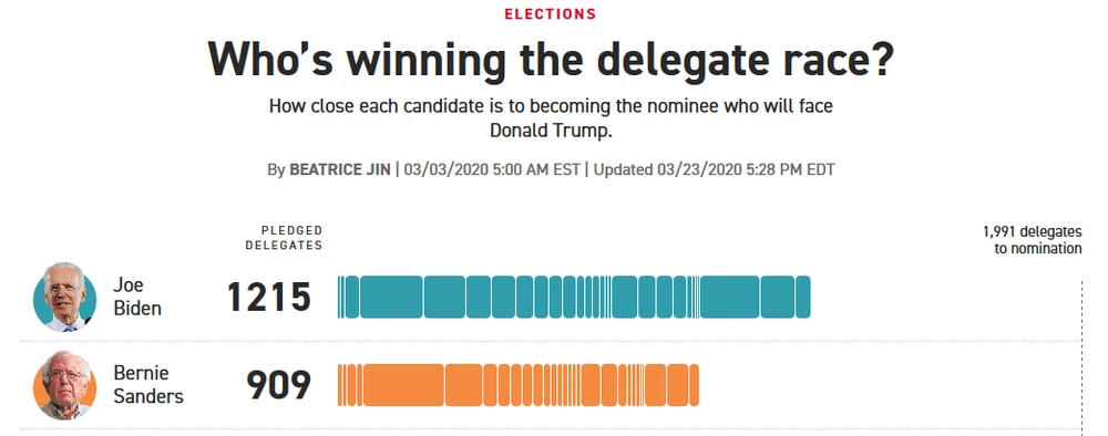 Ứng viên Sanders đang bị dẫn trước với 306 phiếu cử tri. Đồ họa: POLITICO