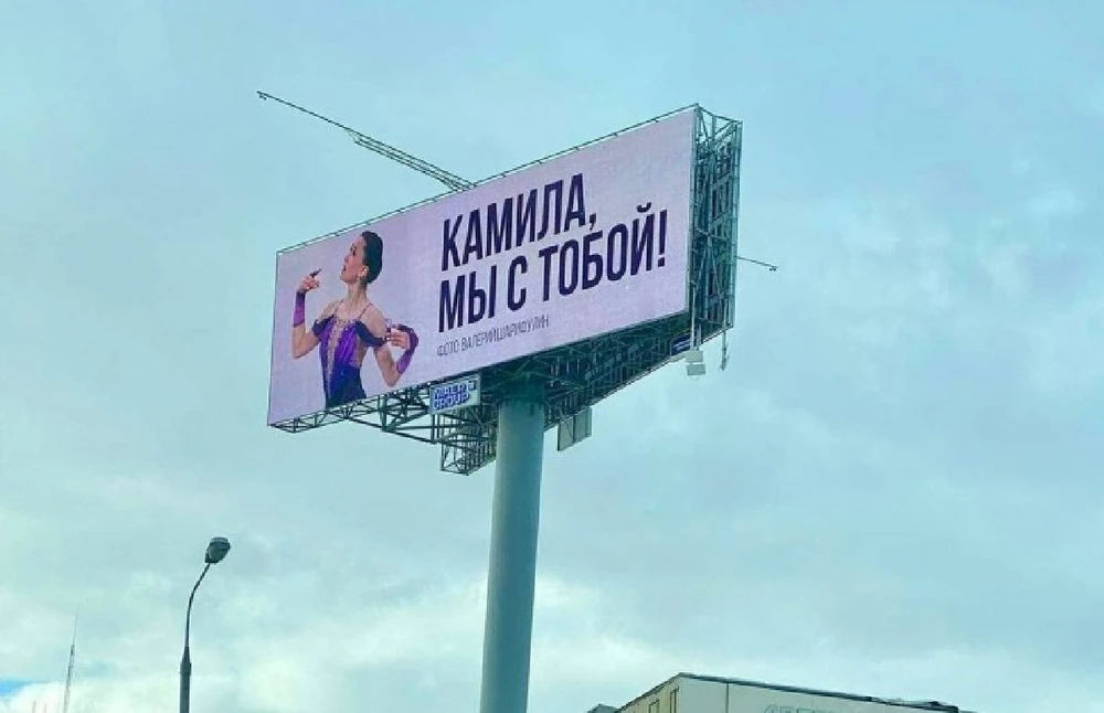 "Kamila Valieva, chúng tôi đồng hành cùng bạn"- thông điệp ở nước Nga gửi đi vụ Valieva. Ảnh: S.E