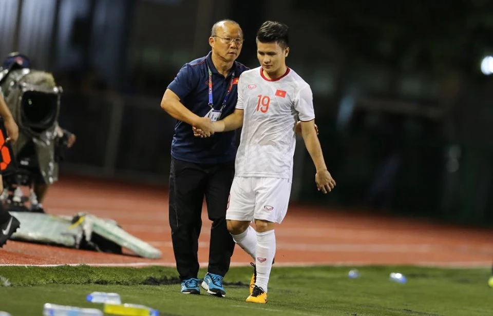 Để bảo toàn lực lượng, HLV Park Hang-seo cho Quang Hải ra nghỉ sau pha va chạm