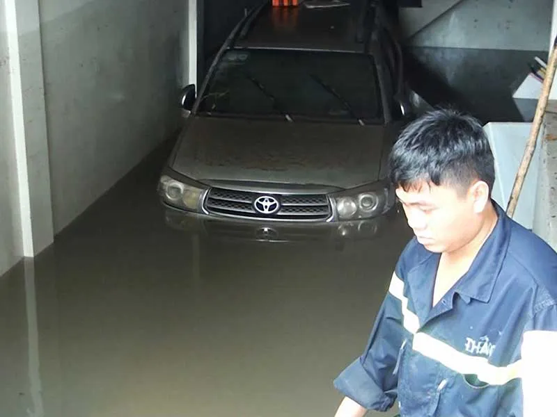 Ngập cả hầm chung cư