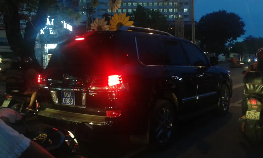 Xe riêng của Phó Chủ tịch Trịnh Xuân Thanh nhưng được gắn biển xanh. Ảnh: Cộng tác viên Q.K