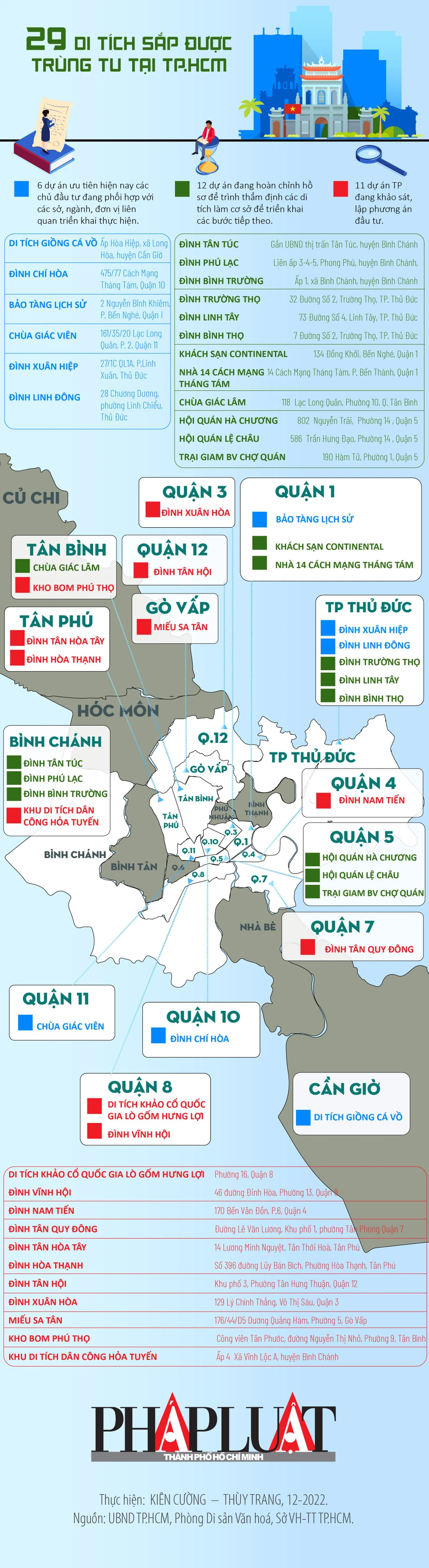 (PLO)- Nhân sự kiện UBND TP.HCM vừa có văn bản về việc trùng tu 29 di tích lịch sử văn hóa nghệ thuật ở 15 quận, huyện từ nay đến năm 2025, PLO giới thiệu đến quý độc giả vị trí 29 điểm đến lí thú này cho những ai ưa khám phá, thích hiểu biết về khảo cổ học, sử học, dân tộc học hay chỉ đơn giản là không biết đi đâu chơi vào cuối tuần ở Sài Gòn.