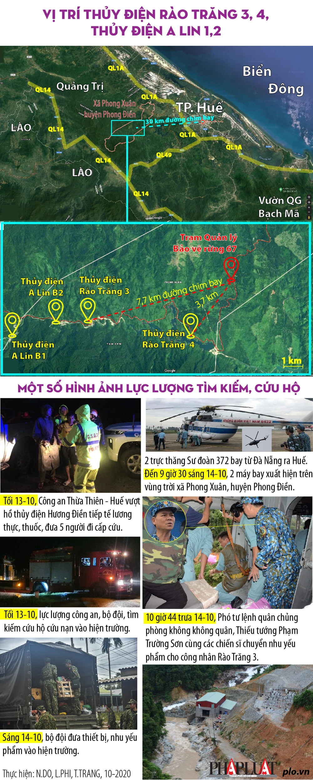 Vị trí thủy điện Rào Trăng 3, nơi có 30 người bị nạn