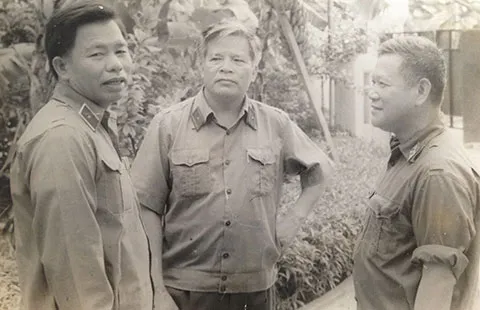 Trung tướng Lê Nam Phong (đứng giữa) với các đồng đội. (Ảnh nhân vật cung cấp)
