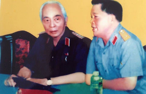 Trung tướng Lê Nam Phong đón tiếp Đại tướng Võ Nguyên Giáp trong một lần thăm Trường Sĩ quan Lục quân 2. (Ảnh nhân vật cung cấp)