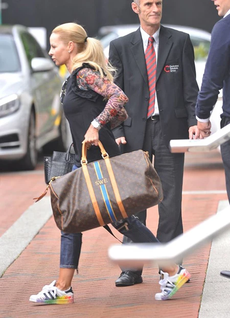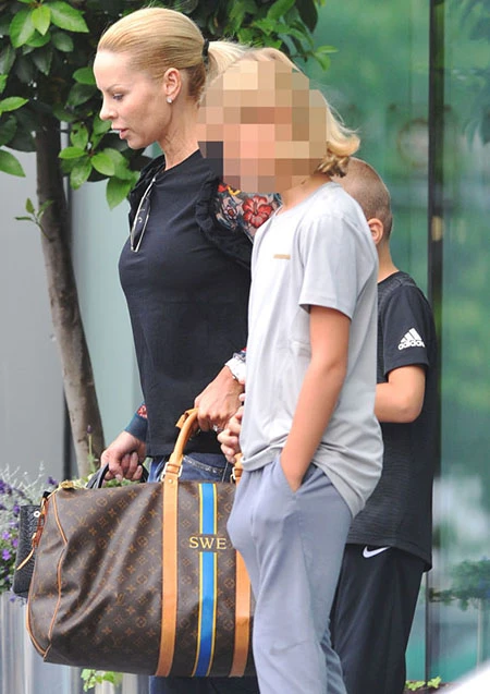 Helena Sager - vợ Ibrahimovic rời khỏi khách sạn vào sáng sớm.