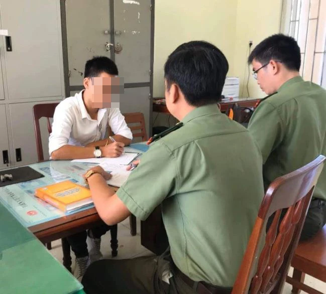 Công an làm việc với chủ tài khoản Facebook đăng thông tin không đúng liên quan đến virus Corona. Ảnh: CA