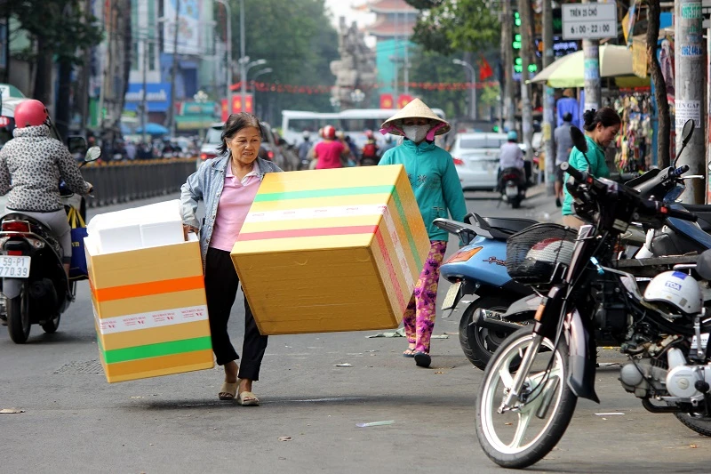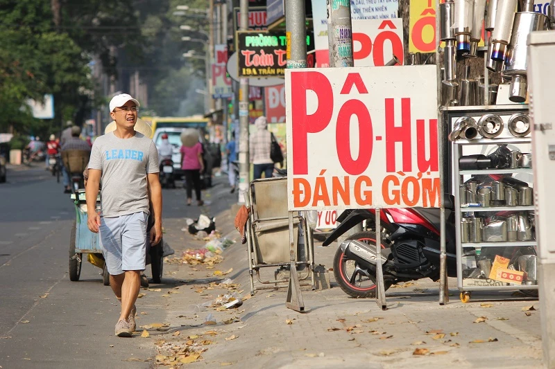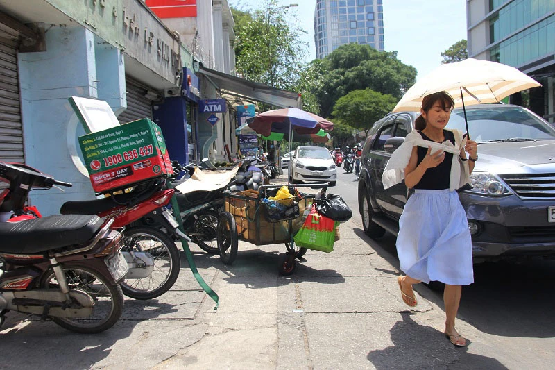 Đường Trần Phú (quận 5) người đi bộ cũng không còn vỉa hè cho người đi bộ.