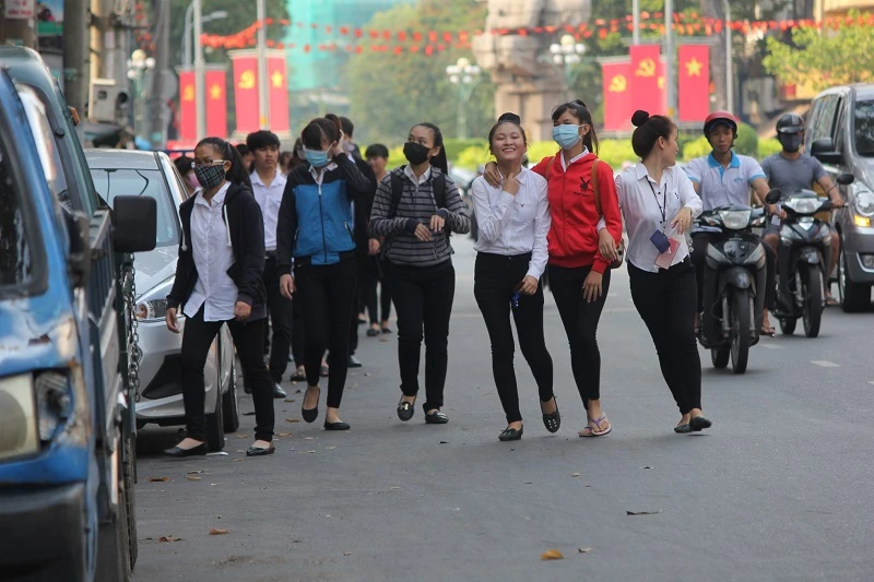 Theo ghi nhận của PV, tình trạng người dân buôn bán lấn chiếm vỉa hè hầu như tràn lan khắp các tuyến đường trung tâm tại một số quận như 3, 5, 10, 11, Tân Bình, Bình Thạnh... Trong ảnh: Sinh viên đi bộ dưới lòng đường Lê Hồng Phong (quận 10) sau giờ tan học.