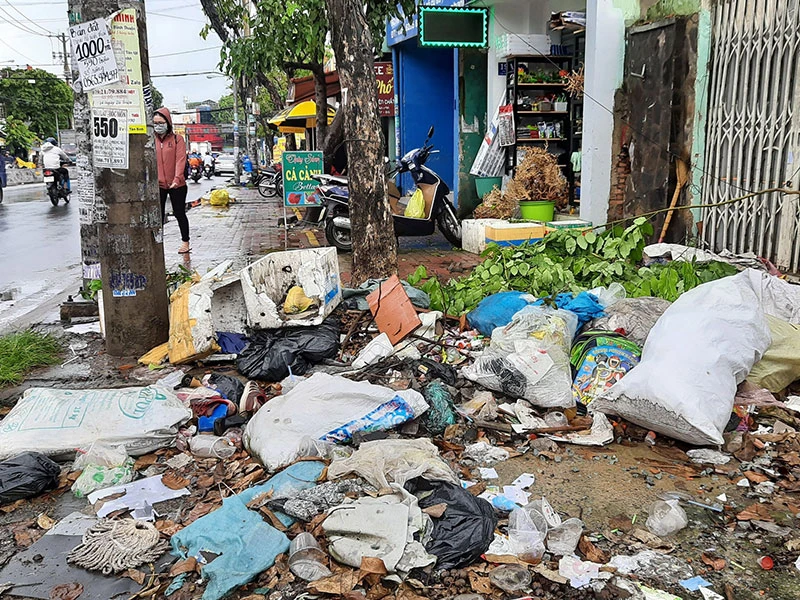 Người dân sinh sống nơi đây, du khách đi ngang đoạn đường này đều phải bịt mũi, mang khẩu trang vì những bao rác đang bốc mùi hôi thối.