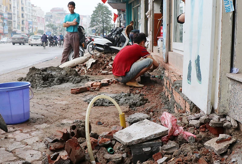 Trong chiến dịch giành lại vỉa hè cho người đi bộ tại Hà Nội, nhiều hộ dân đã tuân thủ đập bỏ bậc tam cấp trước cửa nhà để trả lại vỉa hè.