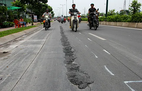 Phương án xử lý được Sở GTVT thông qua là cắt mặt bê tông nhựa nóng dọc theo vết nứt, móc sâu đến dưới đáy nền hạ... để gia cố phần nền hạ này rồi trải lớp sợi thủy tinh chịu lực và trải lại bê tông nhựa nóng mặt đường.