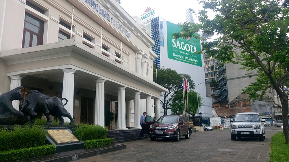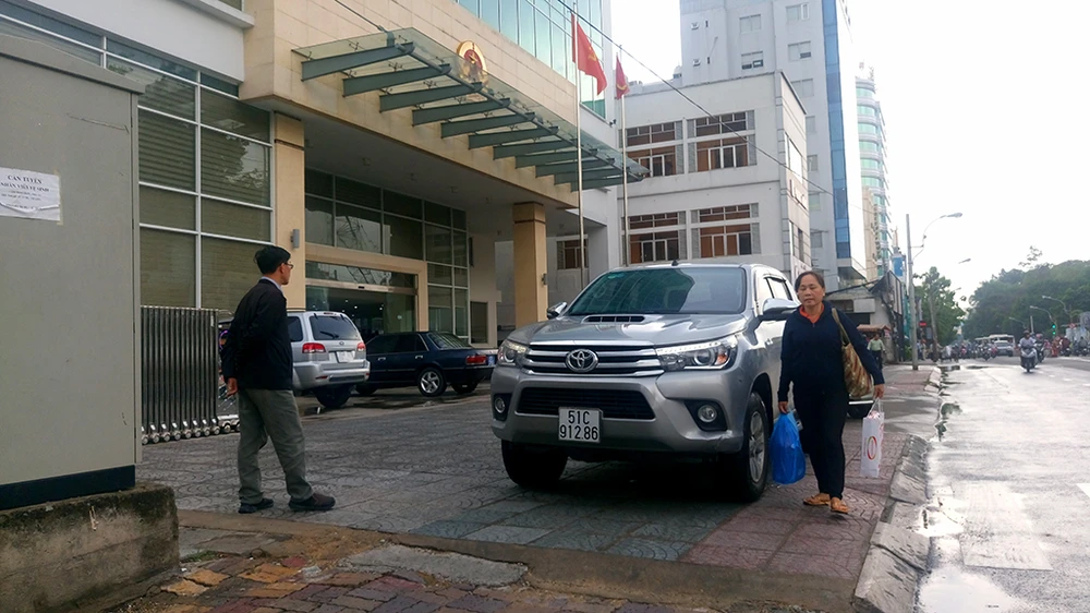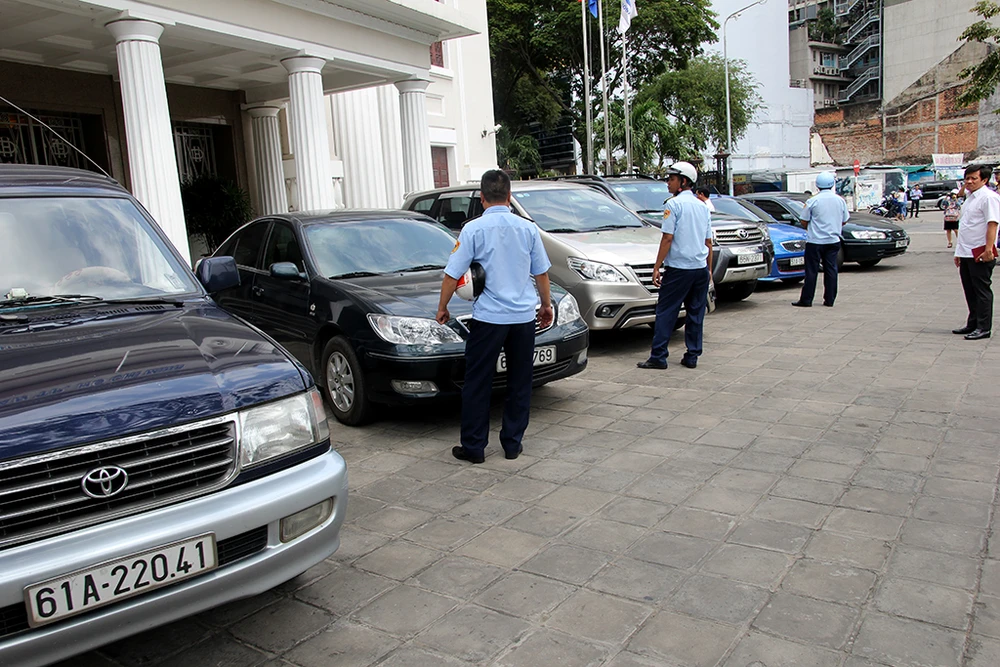 7 ô tô đậu trước Sở Giao dịch chứng khoán TP.HCM trên đường Võ Văn Kiệt từng bị lực lượng chức năng giữ lại lập biên bản, đối với xe không có chủ đã bị cẩu về trụ sở vì đậu chiếm vỉa hè.