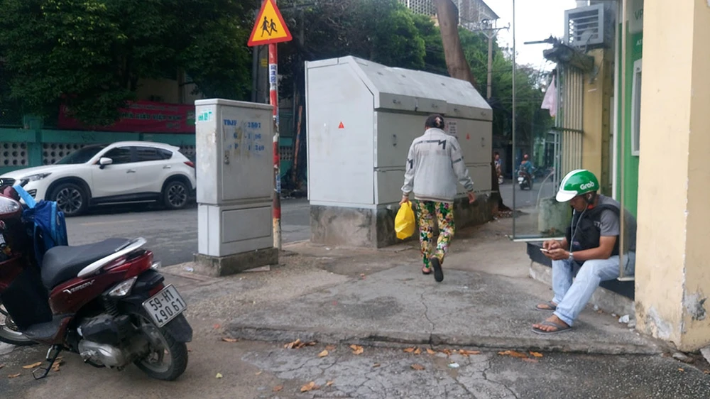 Người đi bộ trên trên vỉa hè trước Trung tâm Bồi dưỡng Chính trị quận 1, chiều 16-5.