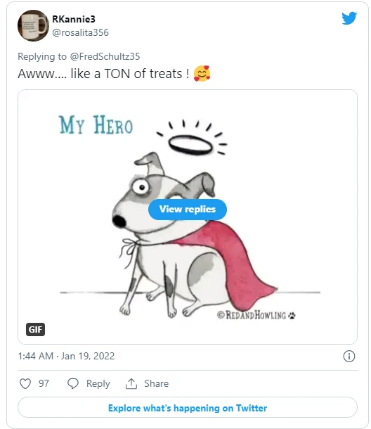 Cộng đồng mạng cho rằng chú chó nên được thưởng món quà lớn cho hành động dũng cảm của mình. Ảnh: TWITTER